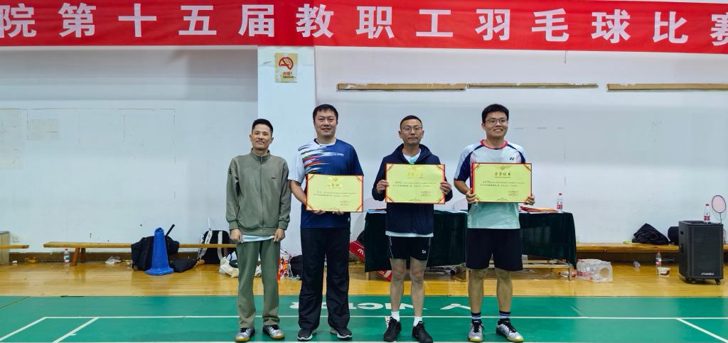 经激烈角逐,团体及单项奖各有归属:体育学院、机电工程学院、机关一分工会分别获得混合团体冠亚季军;教职工组双打前三名分别为刘青、艾晨羽,魏小陆、王红玲,施允洋、刘萍;中层干部组双打前三名分别为杨柳松、乔永刚,张华文、刘尚礼,毛广、付德志;机关二分工会获优秀组织奖,马克思主义学院分工会获体育道德风尚奖,李响、佘勃两位老师被评为最佳运动员。