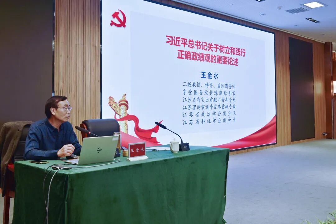 省委党校教研部主任、二级教授,南京理工大学博士生导师王金水讲授在《习近平总书记关于树立和践行正确政绩观的重要论述》专题课程中,围绕树立和践行正确政绩观,结合2025年全国及江苏反腐成绩单,阐释政绩观的根本性意义,明确政绩为谁树、树什么样、靠什么树的核心问题。强调以人民为中心,政绩要经实践、人民、历史检验,作为党员干部需坚守党性、运用辩证思维、强化实干,以新发展理念推动高质量发展,为强国建设、民族复兴筑牢政绩观根基。