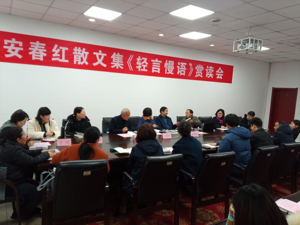 会上,安春红介绍了创作经历以及从教三十多年的感悟,并对现场的我校大学生进行了勉励和指导。她的先生张维国介绍了《轻言慢语》创作背景,并对作品进行了点评。与会的书友分别精心选取了部分内容进行朗读,并畅谈了感悟。