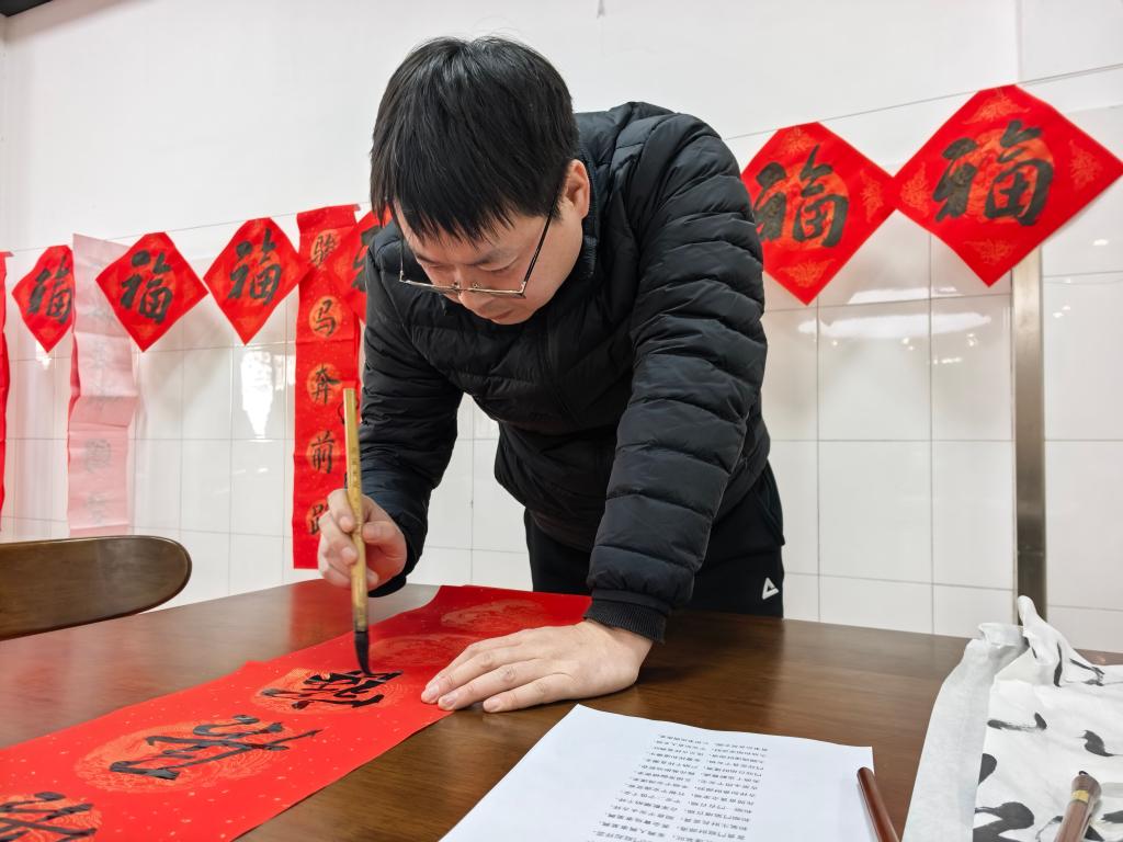 为了营造浓厚的年味,传播中华优秀春节文化和书法文化,校工会书法俱乐部邀请我校艺术与传媒学院四位书法老师和三名俱乐部骨干成员集中展示书法技艺,志愿挥毫泼墨,利用三个多小时为教职工送去了300多个“福”字和200多副春联。活动结束,仍有不少没有领到春联的职工依依不舍。书法俱乐部负责人表示,寒假之前,还将组织人员创作一批春联和“福”字,供大家领取。